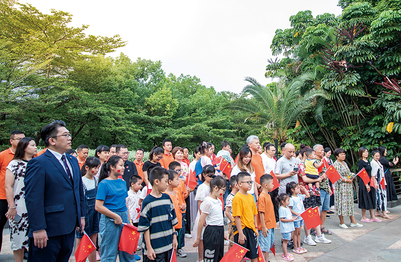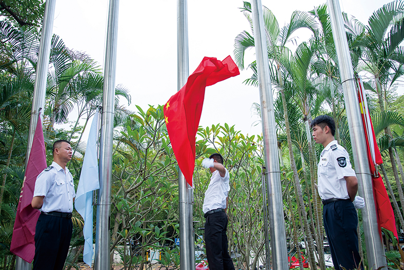 此外,在10月1日國慶節當天,酒店特別舉行了莊嚴的升國旗儀式,很多客人帶著一家人來參加升旗,一起感恩和祝福偉大祖國。
